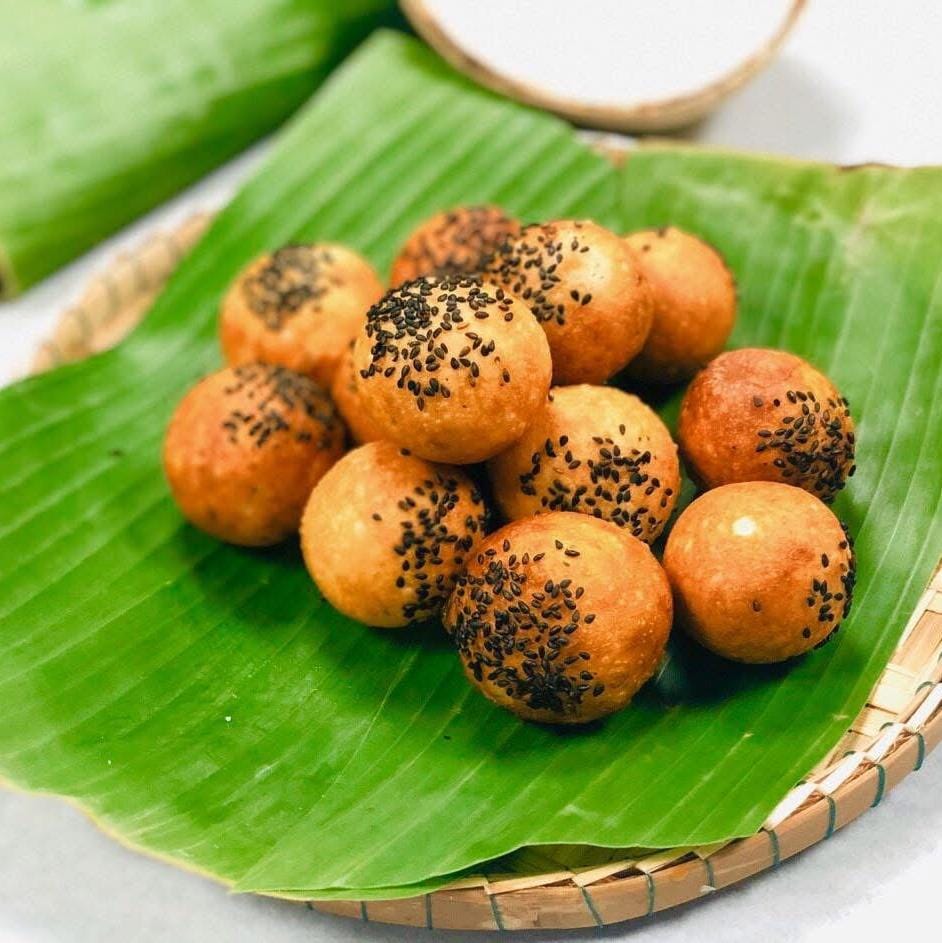 (Farine de riz, sucre, lait de coco, grains de sésames)