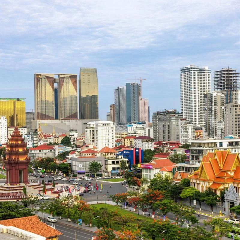 Capitale du Cambodge, Phnom Penh incarne le contraste entre passé et présent. En bordure du Mékong, la ville mêle vestiges coloniaux, bâtiments modernes, marchés colorés et lieux de mémoire.